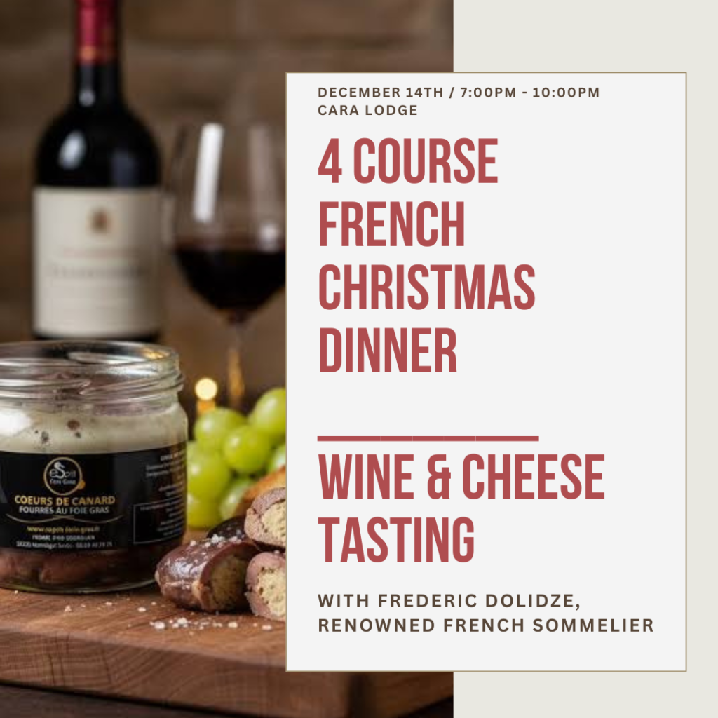 For this year’s festivities, we are excited to announce that we will have a special guest, a French sommelier who will be hosting a Wine & Cheese tasting workshop, as part of our 4 course dinner!